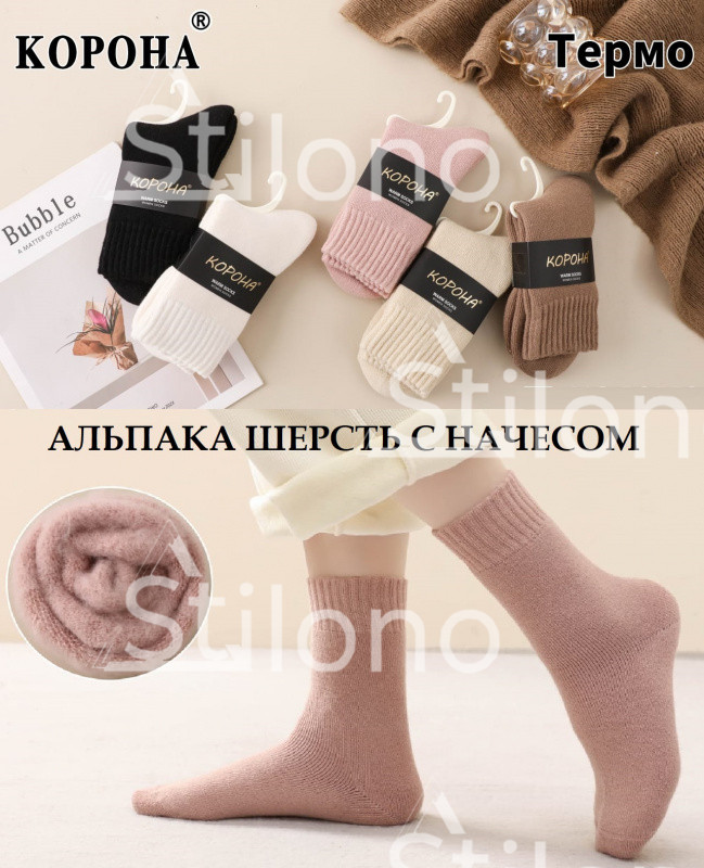 Женские теплые гольфы в рубчик из шерсти ламы